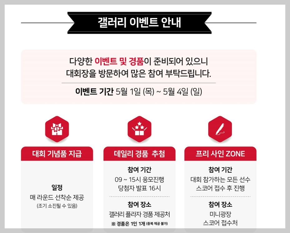 - 데일리 경품 추첨: 09:00~15:00 응모 → 16:00 발표