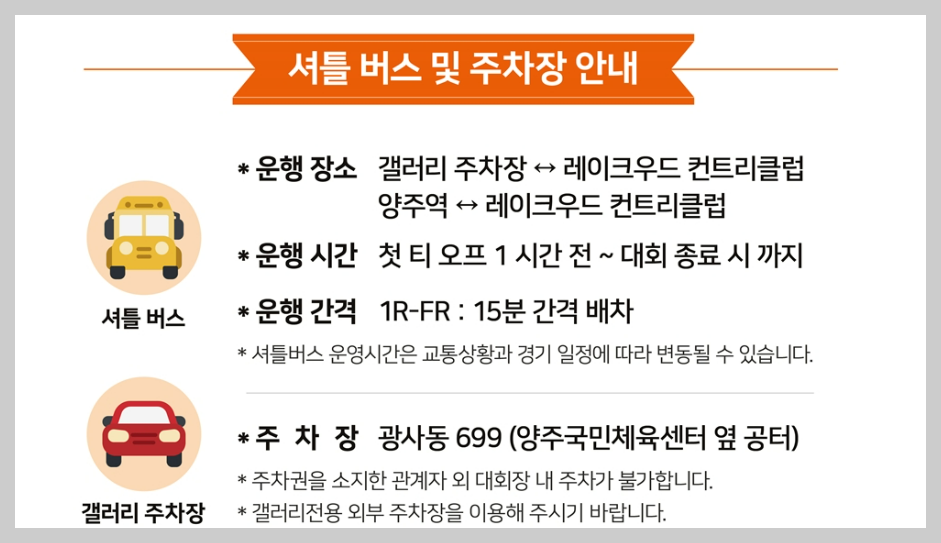 - 운행 노선: 주차장 ↔ 대회장 / 양주역 ↔ 대회장
