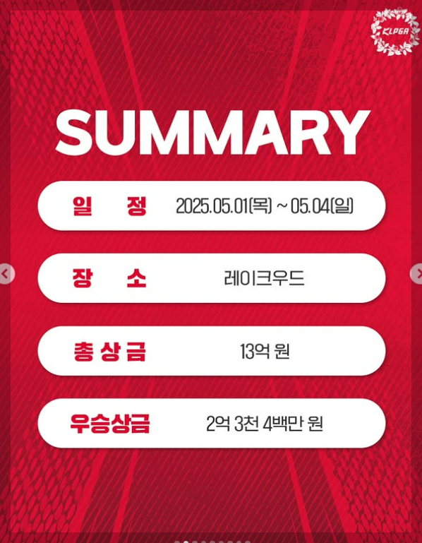 - 총상금: 13억 원 (우승 상금: 2억 3,400만 원)